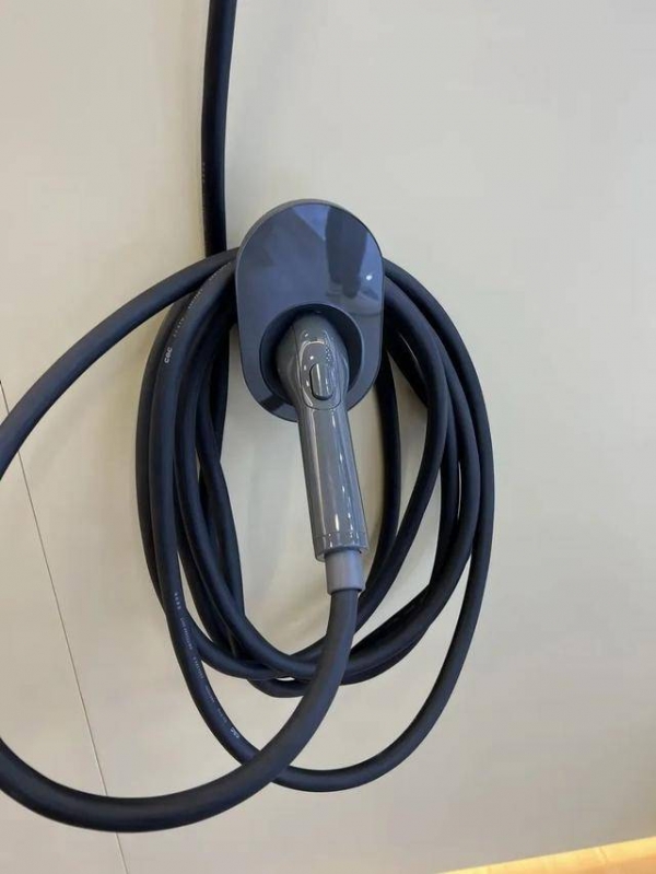 充电线的长度高达7米多,在充电枪的枪头部位,采用的是国际标准7孔设计,而且支持两种电源:220V和380V,远程充电功率可达11KW。