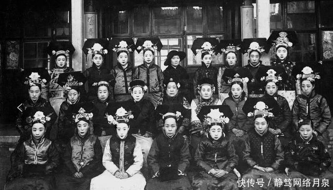 这是当时贵族女子在一起合影,她们打扮光鲜亮丽,从她们的妆容和服饰我们便知道,她们不是普通人家,因为当时的社会底层百姓是没有能力购买照相机拍照的,有细心的人会发现,在照片的最后一排,有个女子的风格和其他人的不一样,她是当时流行的西洋打扮,看上去显得有些许另类。