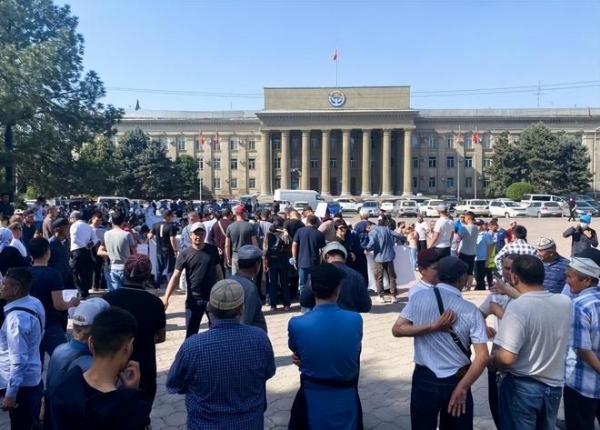 图:2021年4月29日示威者在吉尔吉斯斯坦首都集会,要求解决与塔边境冲突