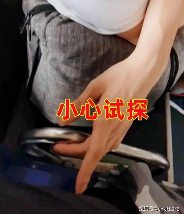 见男子没什么反应,小伙的行为也越来越大胆,一只手差点就放在了对方腿上。