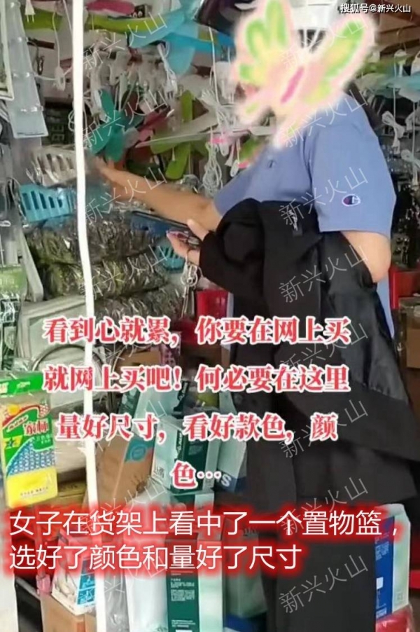 店主坐回椅子上,让女子自己看商品,女子看了一会儿,真的看中了一个置物篮,这个篮子也很便宜,只要8块钱就行了。女子接下来的举动却让店主感到很生气,只见她拿着置物篮去量尺寸,量好尺寸后再拿出手机,打开网购平台,找到了一样的置物篮去对比价钱。