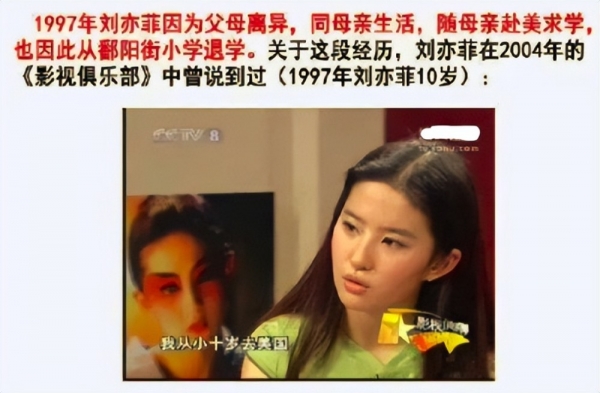 就连刘亦菲自己接受采访时,也提到过自己10岁就跟着母亲到美国了,按照官方年龄计算,这一年刚好是1997年。