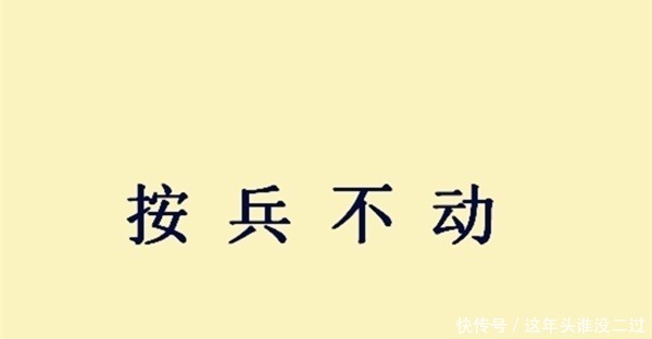 本文要介绍的成语,是文中提到的"按兵不动", 意为使军队暂时不行动,现也比喻暂不开展工作。这句成语的最早出处是《荀子?王制》中的"偃然按兵不动。"