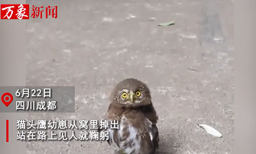 原标题:男子路遇猫头鹰幼崽拦路,见人就鞠躬作揖,几位大汉心都被萌化了