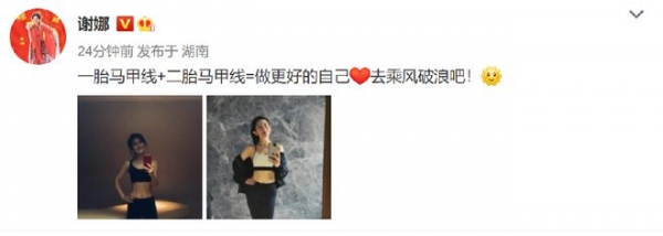 此前,谢娜晒出一二胎产后马甲线照片,并配文:"一胎马甲线+二胎马甲线=做更好的自己。去乘风破浪吧!"虽然已经是三个孩子的妈妈,但谢娜还是自律得让人佩服。前段时间,谢娜分享出健身vlog,老公张杰陪着她一起锻炼,对此,谢娜还称呼张杰为"马甲线教练",俩人简直太甜蜜。