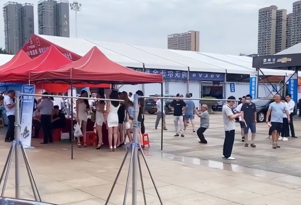 在视频中,一群车模穿着性感时尚的衣服聚在篷子下乘凉避暑,其修长的大腿和完美的身材,引得不少男士驻足围观。