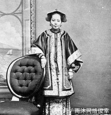直击清朝官员妻子的外貌:图为一位官员的妻子正靠在一把洋气的椅子边上。