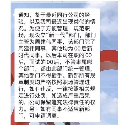 有公司传出00后新部门 图源:网络