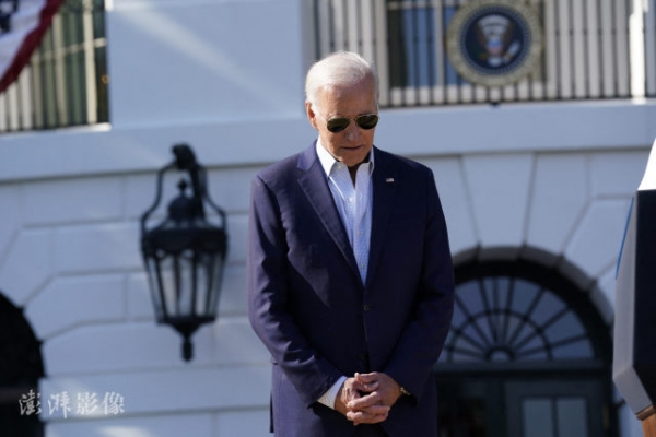 当地时间7月4日,拜登在白宫出席独立日活动,为伊利诺伊州枪击案受害者默哀。图自澎湃影像