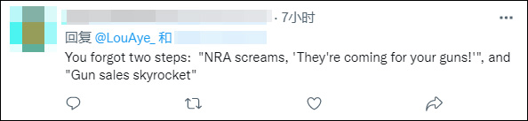 还有许多网民转发这则推文,并写道:"美国道路"……"我今天看过最真实的推文"……"在枪支被人民管制和没收之前还有多少?"