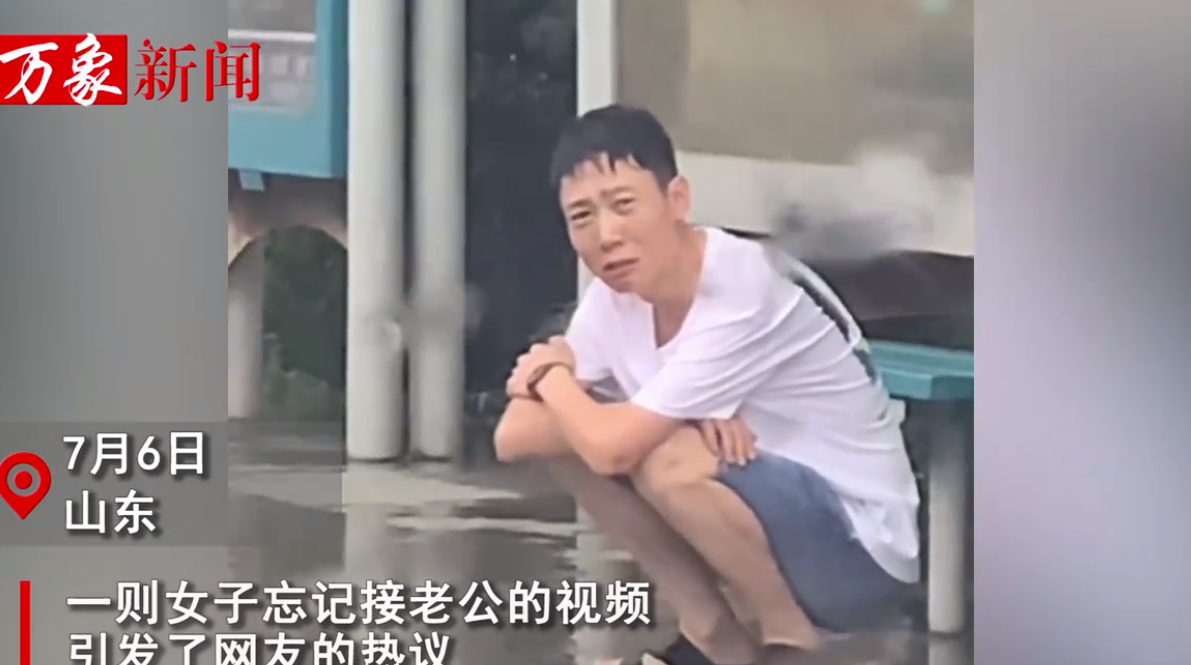 7月6日山东,一则女子忘记接老公的视频引发了网友的热议。视频中的老公蹲在公交站台双手抱膝,满脸委屈的等了一个多小时,老公看到女子开车前来后哭的像300多个月的宝宝。