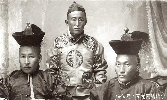 两名身穿清朝服装的蒙古官员,这帽子和大清朝还是有很大不同啊,感觉就是放在上面,走路也不怕掉了。