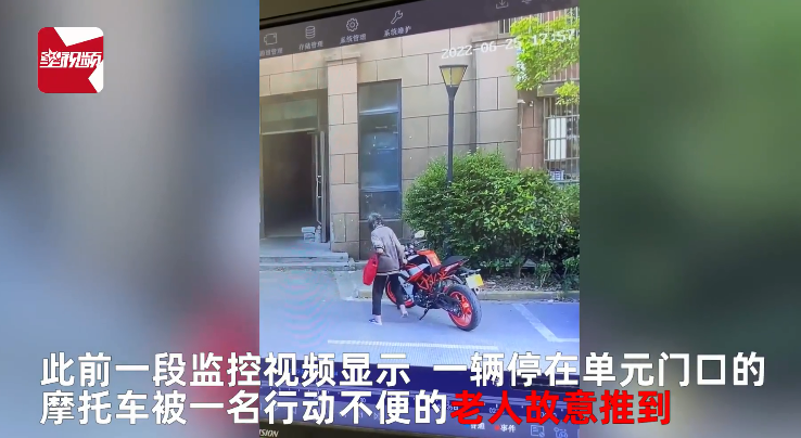 近日,上海。此前一段监控视频显示,一辆停在单元门口的摩托车被一名行动不便的老人故意推到,损失近万元。但老人否认且态度强硬,时至今日车主依旧没有收到赔偿。