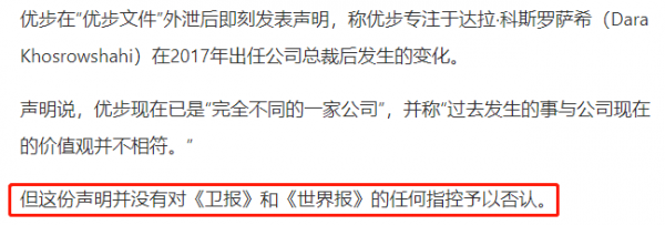 大概是说 2017 年新总裁达拉 · 霍斯劳沙希就任之后, Uber 改了很多,过去的那些事儿和现在公司的价值观完全不符。