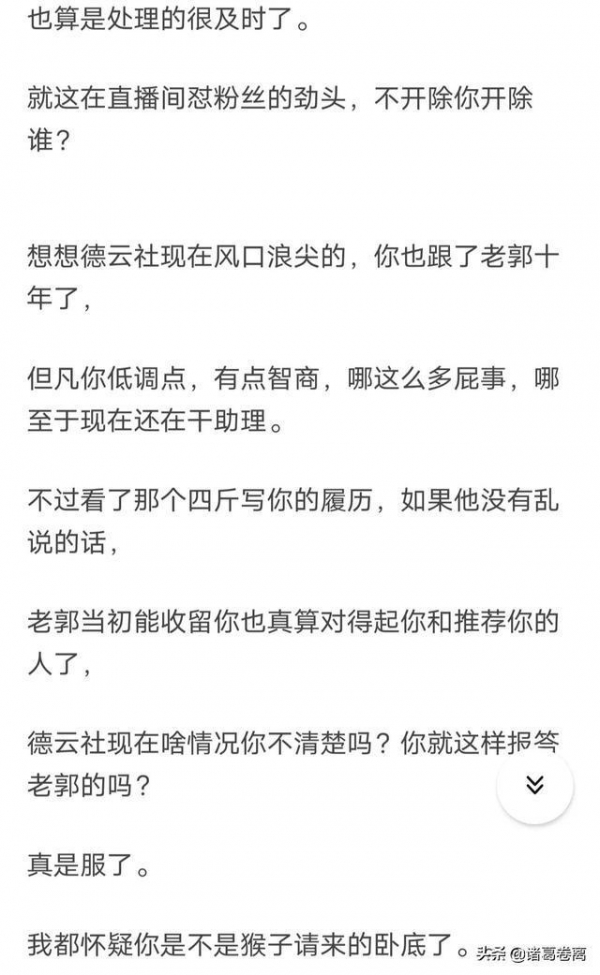 就在网络报道"郭德纲助理被开除"不久,一位知情人士爆料,王楠怒发朋友圈,替自己鸣不平。