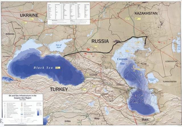 黑线标注的CPC管道,是哈萨克斯坦主要石油出口途径