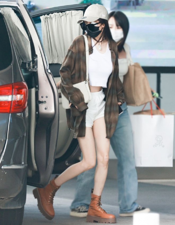 这一次杨幂身穿超短裤,秀出修长笔直的白皙大腿,十分优越。同时上身穿着露脐装,秀出蚂蚁腰,身材十分性感。外穿一件宽松的大衬衫,好身材也是若隐若现,简直就像是漫画里走出来的人。