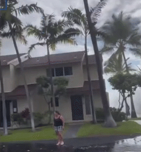 而在当天,巨浪不仅扰乱了墨菲的婚礼,还冲进了居民的家里。据《每日邮报》报道,16日,在凯卢阿·科纳镇以南的金奥浩(Keauhou),两层高联排别墅受到了巨浪侵袭。现场视频显示,一排巨浪越过了别墅的楼顶,淹没了部分房屋和一个停车场。