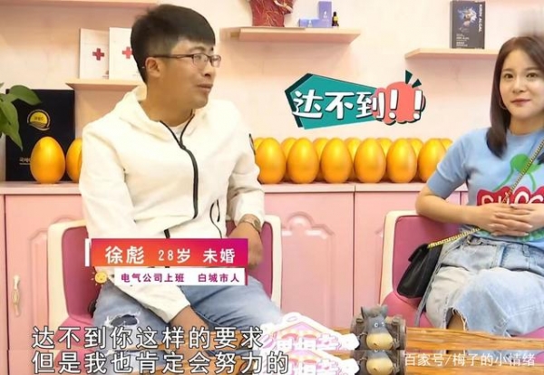 一般人听到这个条件都望而却步了,但是对徐彪而言或许是爱情的力量令人勇敢,他表示自己虽然达不到这个标准,但是自己会朝着这个目标去努力。
