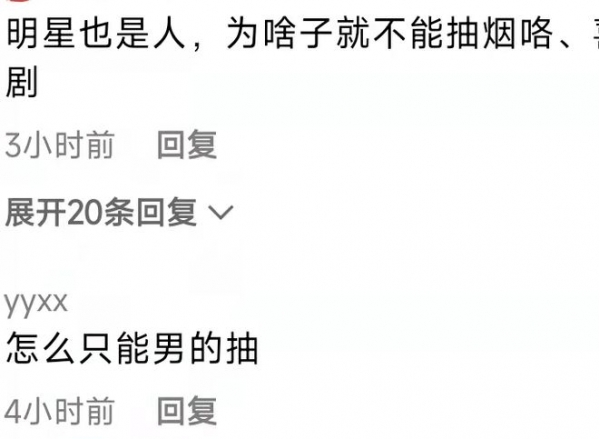 以上照片曝光之后,引发不少网友热议。很多人都在评论区指责刘恋,说她是公众人物,应该为大众起到带头作用,不应该在公共场合吸烟,但也有网友觉得明星也是人,拥有抽烟的权利。
