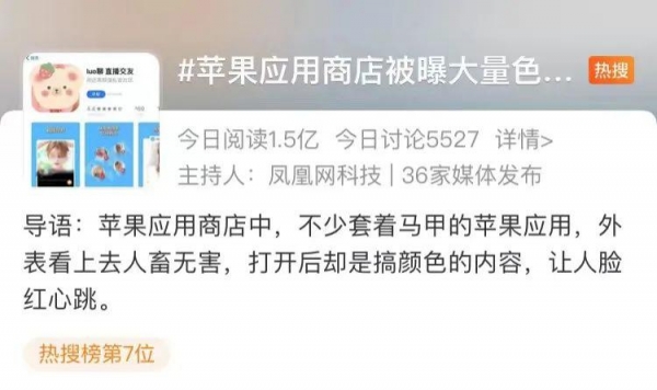 " 苹果应用商店被曝大量色情 App"的消息,近日冲上热搜