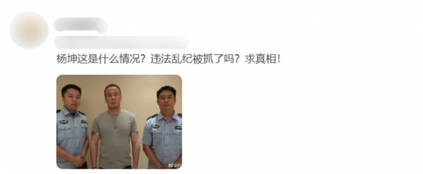 近日,有网友在社交网站上晒出一张图片,画面中的杨坤站在两名警察中间,疑似被抓的样子。不少粉丝们都炸锅了,纷纷表示杨坤怎么被抓了?并没有发现有相关单位进行通报,甚至还有人猜测是假杨坤。