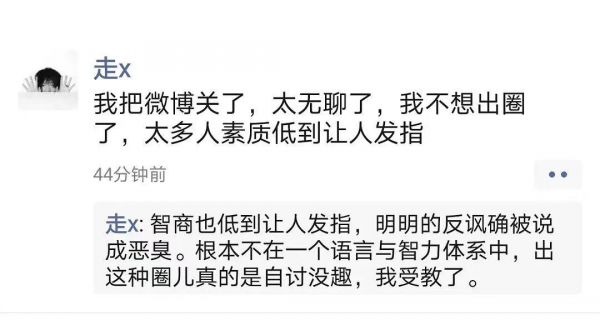被骂之后又发朋友圈内涵网友智商低、素质低,听不懂反讽之意。