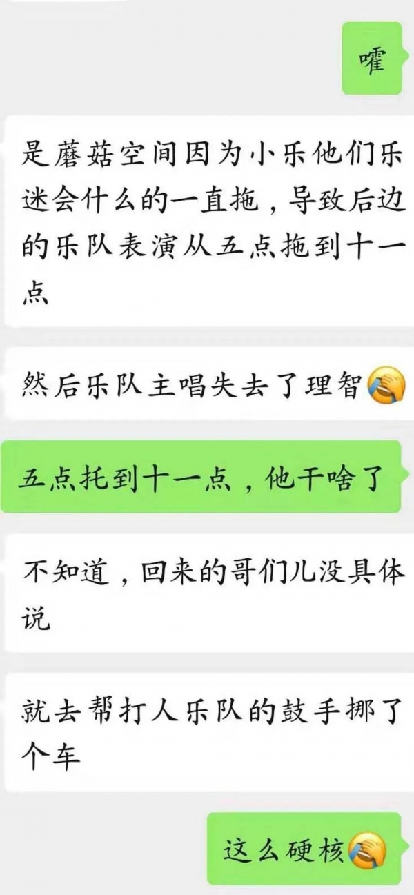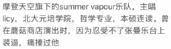 在蘑菇商店,被另一乐队Summer Vapour的主唱Licy揍。