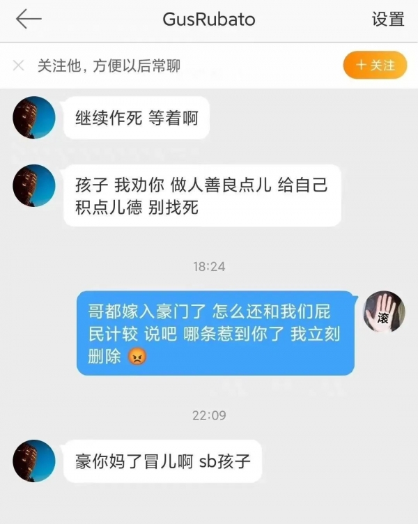 在两人恋情曝光后,滚圈好友赵子健用污言秽语祝贺兄弟睡到了女明星。