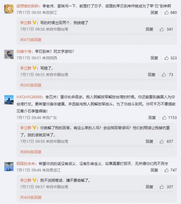 被骂惨的李立群,既委屈又无奈还在不停地解释,说大家曲解了他的回答,还说是台媒故意挖坑让他跳,使得他的原话变味了。