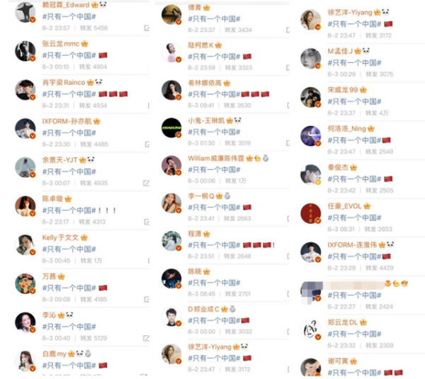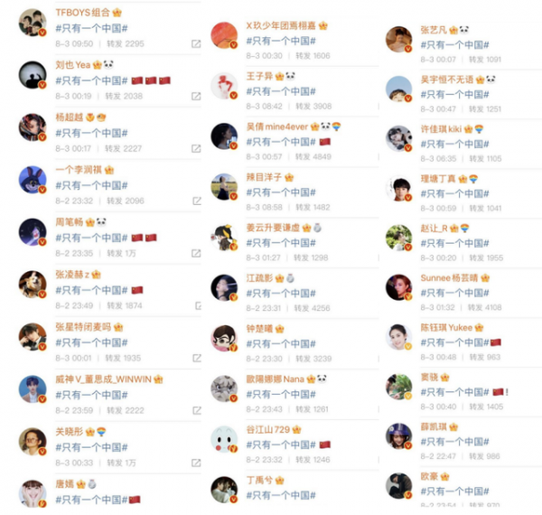 从网友们截取的图片来看,整个娱乐圈的艺人基本上都已经在第一时间为祖国发声。