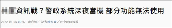 因解放军4日在台岛周边海空域开展规模空前的实战化演训,不少台媒报道称,4日晚瘫痪的警政系统"疑似遭遇黑客攻击",并将矛头直指大陆,怀疑是大陆"信息战"所致。