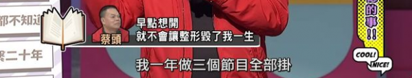 甚至她会劝告好友蔡头,当艺人就要有观众缘,可以适当去整形。