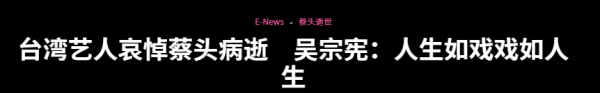 2022年,患末期肝癌的蔡头在医院离世,享寿71岁。蔡头的半生,风光过,也破产落魄过,吴宗宪形容他"人生如戏戏如人生"。