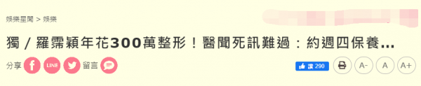 爱美的罗美眉,从不忌讳提整形,年轻时她就做过鼻梁、双眼皮,后来成了通告艺人,更是频繁出入整形医院,定期维持"青春常驻"外表。