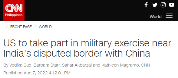 【文/观察者网 李丽】美国有线电视新闻网8月7日援引消息人的话报道称,美国和印度将在10月份举行代号为"准备战争"的联合军演,该演习地点距中印边界争议地区"实际控制线(LAC)"仅95公里。