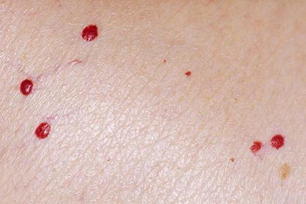 医生看过之后,告诉孙大爷,这是樱桃样血管瘤,和肝病没有关系,主要是由于衰老引起的毛细血管扩张、增生,主要症状就是躯干长出卵圆形或圆形的深红色丘疹。