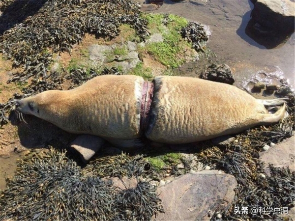 还有一些变成了野生动物身上的枷锁,有海豹被尼龙绳勒死,