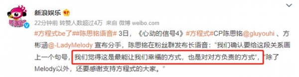 前两天某恋综里大热的方程式CP宣布分手,留下美好的回忆,然后开启彼此新的人生。