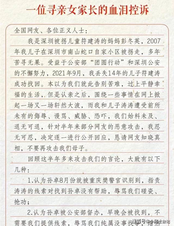 起因是符建涛的母亲因20万悬赏金长期遭受网暴,最终不堪其扰发文控诉并喊话孙海洋对峙,希望他能为此事发声还她一个公道。