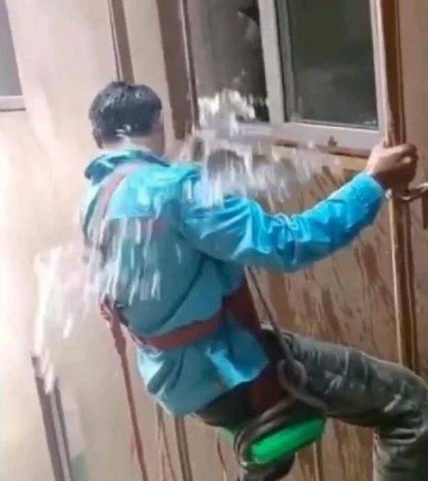 据百姓关注此前报道:8月11日12时许,云南省保山一名工人在一小区悬挂在楼房外,维修天然气管道时,被一住户多次泼水。
