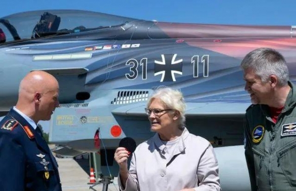 德国国防部长克里斯蒂娜·兰布雷希特(中)在德国战机出发前送行