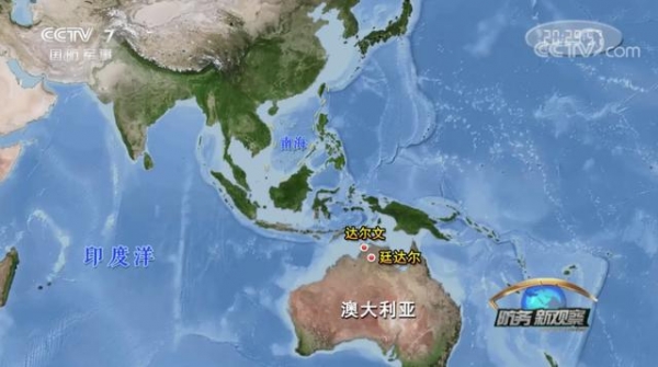 此次"漆黑-2022"军演涉及澳大利亚两大基地:达尔文和廷达尔 图:央视《防务新观察》报道截屏