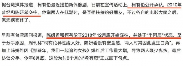 据说,柯有伦是陈妍希抢来的,他们认识时,柯有伦是有女友的。