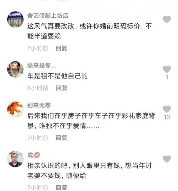 也有网友评论说, 我觉得要彩礼就是陋习,应该拒绝,反正我们这里好像没有彩礼的,生活一样过得挺好,安心过日子不好吗!