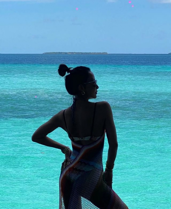 最后一张是逆光照,李玟单手叉腰姿势霸气,侧脸线条紧致五官立体,手臂上的多个金属项链也为其增添了几分时尚感。值得一提的是,这个造型很好地展示了李玟苦练出来的翘臀,十分性感。