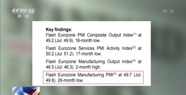 标普全球公司23日公布的报告显示,欧元区8月制造业采购经理人指数(PMI)初值为49.7,为26个月以来的低点。此外,欧元区8月服务业采购经理人指数初值为50.2。报告指出,欧元区制造业持续疲软正与服务业萎缩叠加,同时高通胀和利率上升给需求端带来的压力越来越大。