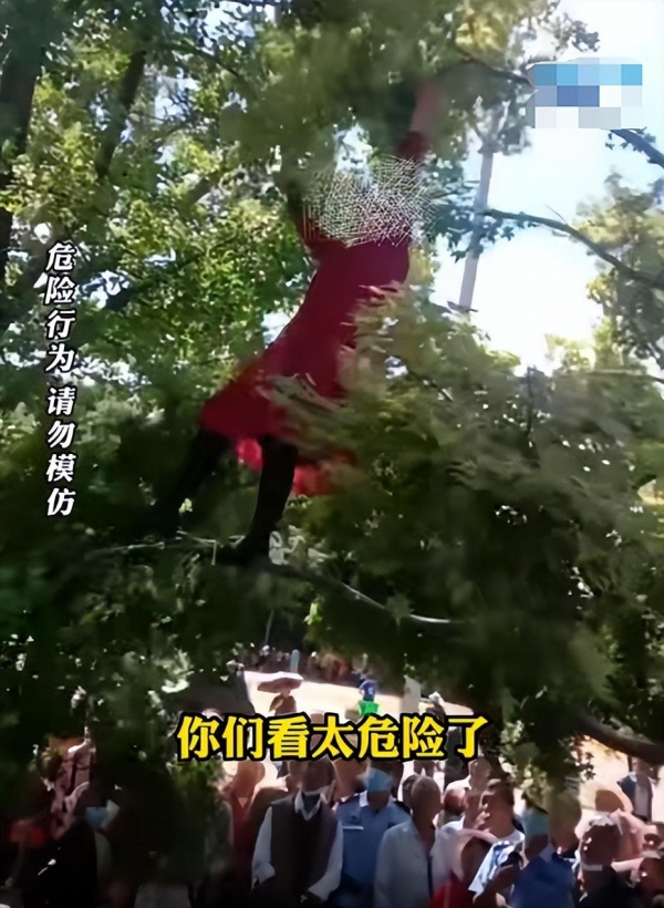 大妈树上跳舞一个小时,引来大量群众围观,谁劝都没用就是不下来