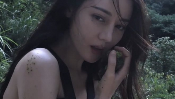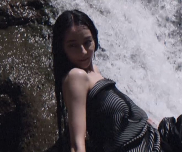 除此之外,迪丽热巴当时拍摄的道具也都是山间溪边随处可见的青苔,在拿着摆拍的时候,青苔碎屑还沾到了迪丽热巴的肩膀上,脏乱之中又充斥着另外一种狂野的美。