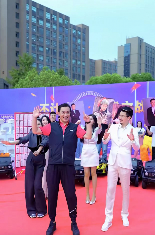 简单地冲着观众打招呼后,黄海冰在"国岳夫妇"还有一众美女网红的带领下,随着欢快的音乐节奏,开始热舞。